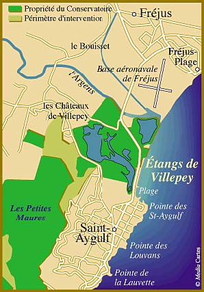 Les étangs de Villepey forment une des rares zones humides littorales entre la Camargue et l'Italie. Ils ont été formés dans le delta de l'Argens, par les divagations du fleuve au fil des siècles, et par les activités humaines d'extraction de sable.Ces espaces naturels sont remarquables du fait des échanges continus entre eaux douces et marines, et sont constitués d'une mosaique de milieux spécifiques, tels que étangs,lagune, vasière, sansouire, prairies humide et sèche, dunes,ripisylve, pinède.Ce vaste éventail d'habitats favorise la présence d'une flore et d'une faune diversifiées et particulières, et constitue les éléments d'un paysage exceptionnel. Du fait de ces qualités, les étangs de Villepey sont répertoriés en Z.N.I.E.F.F ( Zone Naturelle d'Intérêt Ecologique, Floristique et Faunistique ) et au réseau européen Natura 2000.
